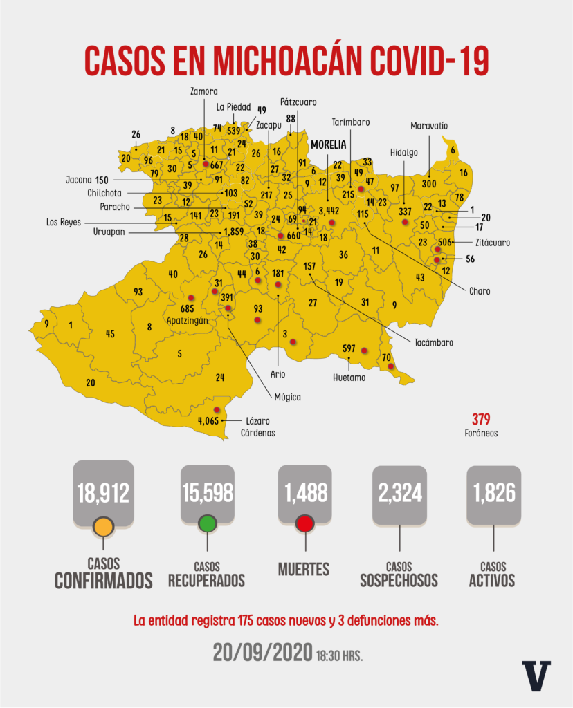 Redacción / La Voz de Michoacán Zamora, Michoacán. Durante operativo sanitario de los Guardianes de la Salud, cinco establecimientos fueron suspendidos en Zamora por no cumplir con las medidas para romper la cadena de contagio de COVID-19. La Secretaría de Salud de Michoacán (SSM), a través de la Comisión Estatal de Protección Contra Riesgos Sanitario (COEPRIS), mantiene acciones de fomento y vigilancia sanitaria en municipios con transmisión sostenida del virus. Como parte de dichas actividades, estos hombres y mujeres verificaron que contaran con tapetes sanitizantes, filtro sanitario, termómetro para medir la temperatura y uso obligatorio de cubrebocas, asimismo colocaron carteles con información sobre las acciones para el cuidado de la salud de la ciudadanía. Los Guardianes de la Salud también supervisaron que en las unidades de transporte público, tanto usuarios como operadores cumplieran con las medidas. La SSM reitera el exhorto a las y los michoacanos para que desde sus hogares adopten las acciones necesarias para proteger su salud y su vida, ya que actualmente no existe vacuna ni tratamiento para el COVID-19. Fuente: Centro Estatal de Operaciones COVID-19 de la SSM. Diseño: Enrique Santiago, La Voz de Michoacán.