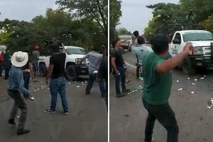 Redacción / La Voz de Michoacán Apatzingán, Michoacán. Elementos de la Guardia Nacional (GN) fueron recibidos a “huevazos” por un grupo de civiles durante el bloqueo que se registró hoy en la carretera Apatzingán-Aguililla, en la comunidad de Cenobio Moreno; se presume que estos sujetos que agredieron a los uniformados son simpatizantes de los grupos armados que operan en la región, dijeron contactos gubernamentales. El acto de provocación en contra de los representantes de la ley fue captado en videos aficionados que fueron compartidos a través de las redes sociales. Asimismo, contactos militares revelaron ante esta redacción que fueron interceptadas comunicaciones de radio en las que los líderes criminales solicitaban a sus allegados “armarse” con huevos para arrojarlos a los guardias nacionales, además de subrayar que en esto fueron empleados principalmente niños, mujeres y personas de la tercera edad. Este día se registró un bloqueo con un vehículo de carga en la carretera Apatzingán-Aguililla, a la altura de la población de Cenobio Moreno, perteneciente a esta demarcación de Apatzingán, el cual fue retirado por la GN en coordinación con el personal de la Secretaría de Seguridad Pública. Ante los “huevazos” que fueron arrojados por los civiles, los guardianes del orden prefirieron tomar distancia para evitar una confrontación, pero al final la vialidad fue desbloqueada y se restableció el tránsito. Igualmente, jefes castrenses puntualizaron que este tipo de acciones son realizadas por los grupos criminales para evitar los operativos en la región.