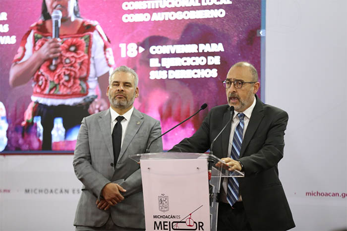 Redacción / La Voz de Michoacán Morelia, Michoacán. La reforma en materia indígena contempla 22 derechos, los cuales se encuentran plenamente establecidos en la Constitución de Michoacán, lo que la convierte en la más progresista del país, destacó el gobernador Alfredo Ramírez Bedolla. Manifestó que ahora se encuentran establecidos en la ley diversos derechos como el presupuesto directo, la autonomía, seguridad, derechos de las mujeres, salud, educación, cultura, obras públicas y lenguas originarias. Recalcó que las comunidades indígenas de la entidad deben ser tomadas en cuenta para la distribución del recurso público de los programas de obra estatal, ya que así se encuentra establecido en la ley. Además de ser consideradas en los programas estatales de obra pública e infraestructura educativa, obra hidráulica, agua y programas de seguridad pública. Destacó que los autogobiernos tienen derecho a recibir de manera directa las participaciones federales que le corresponden en proporcionalidad a los habitantes con los que cuenta. Detalló que todas las comunidades con autogobierno, y otras que no cuentan con este sistema, fueron escuchadas y opinaron respecto a la iniciativa que fue aprobada el pasado jueves por el Congreso local, donde todos las diputadas y diputados se manifestaron a favor.