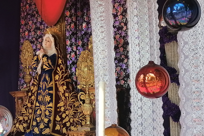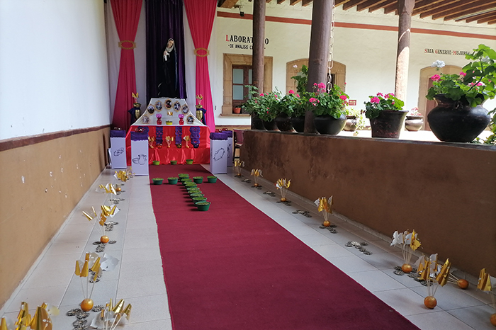 Angélica Ayala / La Voz de Michoacán Pátzcuaro, Michoacán. Con la inauguración del Altar de Dolores se inicia oficialmente con las actividades culturales con motivo de la Semana Santa. Como es tradición, se instaló en el Portal Hidalgo, llamando la atención de todos los que pasaban por el lugar. El presidente municipal, Julio Arreola, al emitir su mensaje señaló que esperan buenas expectativas para los días de vacaciones, ya que Pátzcuaro “es un lugar bendecido”. Al centro del altar se ubicó la imagen de la Virgen Dolorosa. De acuerdo con la explicación que dieron, sobre la virgen colocaron una cruz y sobre ella montaron un corazón, “que nos recuerda el corazón de Jesús, del cual de su costado herido es de donde emana la sangre y el agua que dio la redención al género humano. “Brota una cadena que se conecta con el corazón inmaculado de la Virgen y, a la vez, en la parte de abajo están los dolores de la Virgen y también hay corazones más pequeños que representan a las almas, las almas deben estar encadenadas a María para que María nos lleve a su hijo Jesucristo”, detalló uno de los encargados de montar el altar. Durante la explicación se informó que los medallones que están a los pies de la Dolora representan sus siete dolores, “que son la presentación del niño Jesús en el templo, cuando el anciano Simeón le dice y ‘a ti una espada atravesará tu alma’. Después, cuando tiene que ir con San José y el niño a Egipto y evitar que Herodes lo matara, el tercer dolor es cuando el niño Jesús es perdido y es hallado en el templo”. Foto, Angélica Ayala. Los otros medallones significan el encuentro de la Virgen con Jesús en la vía dolorosa, otro más es el dolor cuando Jesús muere en la cruz, “el sexto dolor cuando es bajado de la cruz y puesto en los brazos de su madre, y el séptimo dolor, cuando Jesús es sepultado y la soledad de María”, explicaron. Todo el altar está cubierto por un tapete de aserrín, asemejando a los bordados textiles y estos a su vez simbolizan el suavizar el camino de la Dolorosa o el camino hacia el Calvario, todo el altar está rodeado de trigo germinado, que es la materia prima para la elaboración del pan que se convertirá en eucaristía, seguían detallando cada uno de los elementos del altar. El trigo germinado también representa a Cristo que tiene que crecer, “que tiene que morir para darnos vida eterna, y está regado con las lágrimas de la Virgen, lágrimas que también están representadas en todas estas esferas que están colgadas en todo el trayecto del altar”. El montaje del Altar de Dolores fue por monseñor Diego Monroy y los recursos aportados por el municipio. El presidente municipal, Julio Arreola Vázquez, al emitir un mensaje, se dijo complacido y bendecido porque ahora tiene la oportunidad de trabajar para el pueblo de Pátzcuaro, pero, además, explicó que se esperan buenos resultados en cuanto a afluencia turística y que todo resulte tranquilo durante los días santos. A los altares también se les conoce como “Incendios”, debido a la cantidad de velas que se colocaban y encendían, aunado a las cosas brillantes que se colocan como las esferas, las telas y las banderillas doradas insertadas en las naranjas doradas, que representan el corazón de la Virgen María atravesado por las siete espadas. Mientras que los botellones de agua también son para representar las lágrimas de la Virgen. Los Altares de Dolores datan del siglo XVI, sin embargo, dos siglos después se empezó a documentar esta celebración y empiezan a salir de las iglesias a espacios públicos. Fueron los franciscanos quienes iniciaron con esta actividad para promover los ritos católicos entre los indígenas. Foto, Angélica Ayala. En Pátzcuaro, de acuerdo con los datos recabados, esta tradición fue rescatada hace poco más de 25 años por un grupo de trabajadoras del Museo de Industrias Populares de Pátzcuaro, quienes montaron el altar dedicado a la Dolorosa en el museo con el apoyo de algunos vecinos. Todos los elementos que integran el altar son la representación de los cuatro elementos: aire, tierra, fuego y agua, que se conjugan para aminorar el dolor de la virgen. Las aguas de colores son las lágrimas vertidas por María; frutas, flores y semillas germinadas son producto de la madre tierra; banderitas doradas y papel picado que revolotean al soplo del viento; velas y veladoras, que mantienen vivo el fuego de la esperanza de una nueva vida, aun después de la muerte.