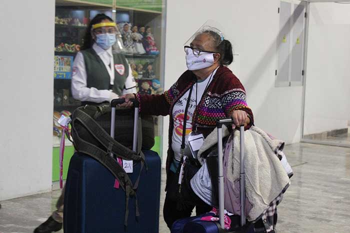 Redacción / La Voz de Michoacán Michoacán. Luego de convivir durante más de tres semanas con sus seres queridos en Estados Unidos, 64 integrantes del programa sello del Gobierno de Silvano Aureoles Conejo, Palomas Mensajeras, regresaron a sus lugares de origen, en un viaje apegado a los lineamientos sanitarios establecidos para evitar la propagación del COVID-19.Provenientes de Los Ángeles california, 17 madres y padres de familia, arribaron al aeropuerto de Uruapan, para de ahí abordar el autobús que los trasladó hasta su lugar de origen, el municipio de Lázaro Cárdenas, donde fueron recibidos por sus familiares.Luego de despedirse de sus seres queridos, 47 habitantes personas adultas mayores originarias del municipio de Arteaga, arribaron al aeropuerto de San José California para abordar el avión que los trasladó a Morelia, donde posteriormente subieron al camión que los llevó a su destino.Los integrantes de ambos grupos lograron cristalizar el sueño de reencontrarse con sus seres queridos, derivado de la instrucción girada por el Gobernador del Estado, Silvano Aureoles, para apoyar en el acompañamiento de su viaje a toda persona adulta mayor que ya contara con su visa y boleto.Durante los viajes, el personal de la Semigrante, encabezado por el titular de la dependencia, José Luis Gutiérrez Pérez, lleva a cabo la entrega de cubrebocas y caretas a las Palomas Mensajeras y vigila el uso de gel y la sana distancia en el trayecto y el reencuentro.