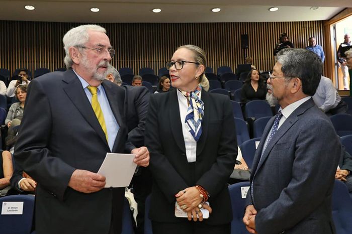 Redacción / La Voz de Michoacán Morelia, Michoacán. La Universidad Nacional Autónoma de México (UNAM) destacó el trabajo colaborativo que se está realizando con la Universidad Michoacana de San Nicolás de Hidalgo (UMSNH), lo anterior quedó de manifiesto durante el cuarto informe de actividades que realizó el Centro de Investigaciones en Geografía Ambiental (CIGA), perteneciente a la Máxima Casa de Estudios del país. Durante el evento, el rector de la UNAM, Enrique Graue Wiechers, saludó la presencia de la rectora Yarabí Ávila González, con quien intercambió algunos puntos de vista. En este marco, al realizar su informe, el director del Centro de Investigaciones en Geografía Ambiental, José Antonio Vieyra Medrano, indicó que la institución está trabajando en diversos proyectos con el Gobierno del Estado y con la Universidad Michoacana en favor de la entidad. Comentó que uno de ellos, tiene que ver con el tema de la frontera agrícola del aguacate, que dijo es un problema importante en la región por el cambio de uso de suelo, por los impactos sociales, económicos y ambientales, el cual se está abordando de manera interdisciplinaria por parte de diversas instituciones como la Secretaría de Medio Ambiente, el Instituto de Ciencia, Tecnología e Innovación, la UNAM, la UMSNH, así como alrededor de diez instancias más. “Ese es uno de los proyectos a nivel Michoacán que está siendo sometido ahorita a una convocatoria de CONACYT para recaudar fondos”. Por su parte, el rector de la UNAM, Enrique Graue Wiechers, agradeció la presencia de la rectora Yarabí Ávila, y reconoció el trabajo desarrollado por el Centro en materia de geografía ambiental. “Los logros del CIGA, son los logros de la Universidad Nacional”. Durante el evento también estuvo presente, el coordinador de la Investigación Científica de la UNAM, William Lee Alardín; Alberto Ken Oyama Nakagawa, miembro de la Junta de Gobierno de la UNAM; el coordinador de la Investigación Científica de la UMSNH, Jesús Campos García, así como integrantes de la comunidad académica.