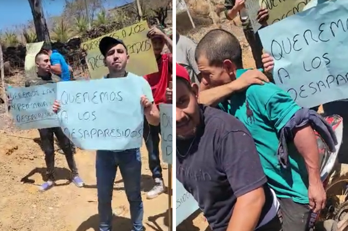 De acuerdo al material videográfico, se ve a un grupo de personas en un camino de terracería que portan cartulinas con las leyendas “Queremos a los desaparecidos”, “Pedimos al gobierno que se pongan a trabajar en los lugares donde está la inseguridad”, entre otras.