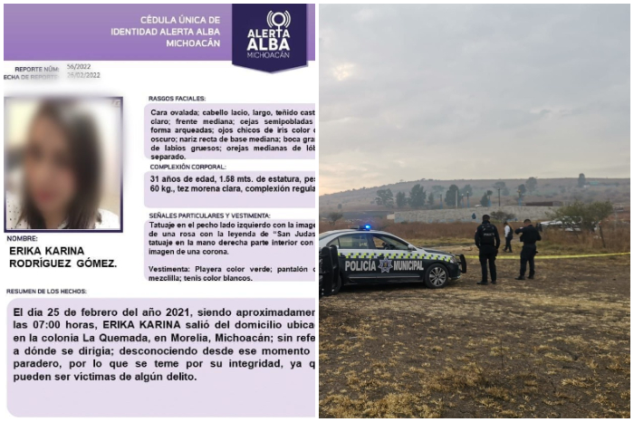 Redacción / La Voz de Michoacán Morelia, Michoacán. Erika Karina R., de 31 años de edad, y quien había sido reportada como desaparecida tras salir de su casa en Morelia, es la mujer que fue encontrada sin vida la mañana de este sábado en la colonia Los Ángeles, en la capital michoacana. La víctima, quien presentaba huellas de haber sido asfixiada, salió de su domicilio en la colonia La Quemada el viernes por la mañana, y desde ese momento no se supo más de ella, hasta que sus familiares se enteraron de su deceso la tarde de este sábado. Esta mañana se activó una Alerta Amber para dar con el paradero de Erika Karina, pero al paso de las horas, fue identificada como la mujer encontrada sin vida en la colonia Los Ángeles. Foto: La Voz de Michoacán. Personal de Seguridad Pública fue alertado sobre el hallazgo de una persona tirada junto a un terreno baldío, sobre la calle Tejocote del citado asentamiento, por lo que los uniformados se trasladaron al sitio. Al confirmar que la joven carecía de signos vitales, oficiales de la Policía Municipal acordonaron el área de intervención en apego a la cadena de custodia para evitar la contaminación de evidencias. Más tarde los expertos de la Fiscalía General del Estado arribo a la escena, para emprender la respectiva recolección de indicios y de testimonios. Una vez que se realizó la correspondiente necropsia, se confirmó que la probable causa del deceso fue asfixia.
