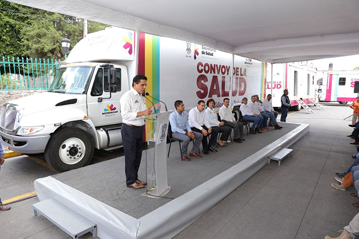 Redacción / La Voz de Michoacán Tarímbaro, Michoacán. Con la meta de llegar a las comunidades más alejadas de 56 municipios del estado y así completar la cobertura en los 113 ayuntamientos michoacanos, el Gobernador Constitucional Silvano Aureoles Conejo, dio el banderazo de salida de los Convoyes de la Salud 2018. Esta acción, que dio inicio el 9 de diciembre de 2016, consiste en acercar los servicios de atención primaria a la salud a la población de pobreza extrema y carencia alimentaria, priorizando grupos vulnerables, a través de dos convoyes, cada uno constituido por cuatro unidades móviles donde además de la consulta médica, se ofrecen 13 estudios de laboratorio y cuatro de gabinete. El mandatario estatal hizo un llamado a la población a acercarse a estos convoyes, ya que muchas enfermedades como el cáncer de mama o el cáncer de próstata, son curables cuando se detectan a tiempo. También manifestó que uno de los temas próximos a resolver, es la profesionalización y regularización del personal de enfermería, además de buscar los esquemas para que las y los médicos cuenten con una base y no laboren únicamente bajo contrato. La secretaria de Salud en el Estado, Diana Celia Carpio Ríos, informó que durante el 2017 los convoyes visitaron 100 localidades en 57 municipios, donde se atendieron 28 mil 924 pacientes, se realizaron 57 mil 354 estudios de laboratorio, 4 mil 493 mastografías, 5 mil 764 densitometrías, 4 mil 127 radiografías, 2 mil 267 ultrasonidos mamarios, mil 440 ultrasonidos obstétricos y 3 mil 703 electrocardiogramas. Asimismo, dijo que se espera abarcar este año una atención de entre 80 y 100 consultas por día a través de estos convoyes y en vinculación con IMSS Prospera. Los convoyes que son operados por cuatro médicos generales, cuatro enfermeras, dos químicos, cuatro técnicos radiólogos, cuatro laboratoristas, así como 10 promotores y promotoras, llegarán a las localidades y colonias de Tarímbaro más vulnerables, donde brindarán el servicio a lo largo de una semana; posteriormente, se trasladarán a Tzitzio, Queréndaro, Zinapécuaro y Maravatío. Por otro lado, al escuchar algunas peticiones del secretario del Ayuntamiento de Tarímbaro, Amado Hernández Ortiz, respecto de unir esfuerzos por la mejora de los servicios básicos urbanos y vialidades, el Gobernador Aureoles Conejo manifestó la urgencia de que al municipio se le asignen más recursos del Fondo Metropolitano, ya que en las últimas décadas ha crecido su población, pero no así los servicios públicos básicos.