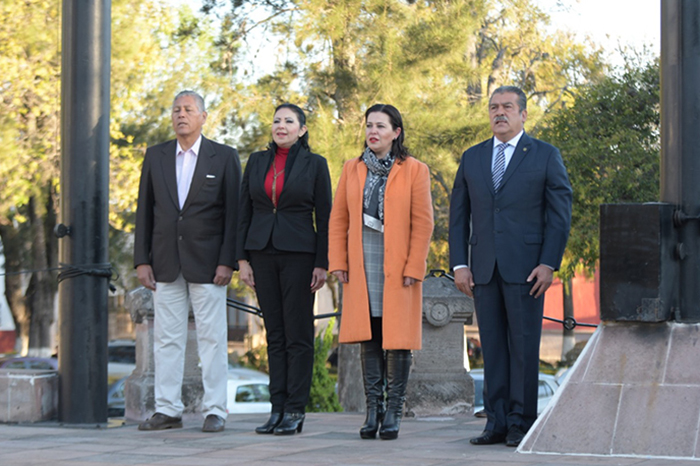 Foto: Cortesía. Izamiento de Bandera Nacional y guardia de honor en la plaza jardín Morelos.