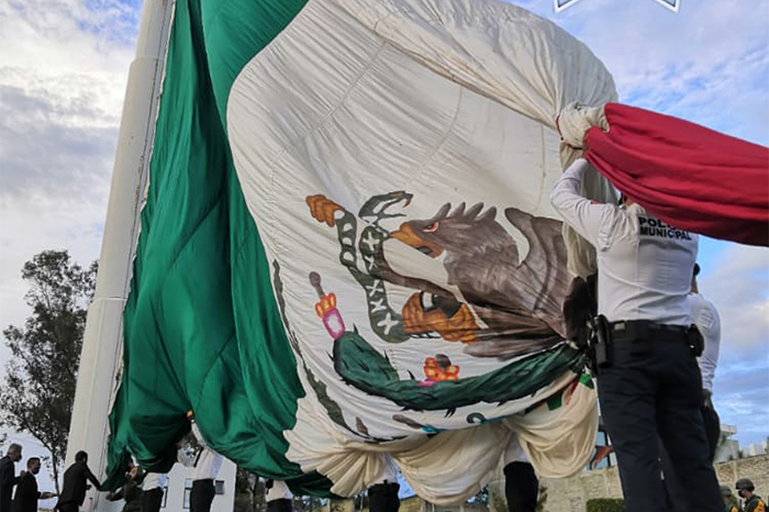 Con el fin de rendir honores a la bandera, la Policía de Morelia compartió en Twitter el izamiento de la bandera en el inicio de este mes patrio.