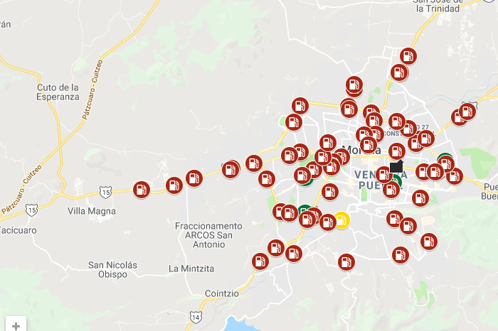 Jorge Manzo/La Voz de Michoacán Morelia, Michoacán. Durante las últimas horas, los automovilistas han tenido que padecer un peregrinar en búsqueda de estaciones de servicio para poder cargar sus unidades. La falta de información clara y precisa tanto de Petróleos Mexicanos como de los empresarios, estos últimos no saben con precisión cuándo serán suministrados, ha obligado a que en la Internet se genere una plataforma en donde fluyen datos. A través de Google se ha difundido un mapa en donde se ubican las estaciones de servicio de gasolina. En las mismas, se difunde cuáles son las que tienen combustible, en dónde está por llegar, y en las que de plano no se tiene cargamento en espera. Si bien, los datos no son aportados por una fuente oficial, sí ha sido una herramienta consultada por los usuarios, quienes desesperados han buscado una opción para no quedarse varados. A través de esta liga, la plataforma de de Google Maps (puedes darle clic aquí) te lleva virtualmente a la estación que tú selecciones. Por otra parte, La Voz de Michoacán ha hecho un ejercicio en donde se han hecho una serie de reflexiones acerca de la viabilidad de permanecer o no en las filas en las estaciones de servicio. Lo cierto es que el abasto de combustibles en Morelia es a "cuenta gotas" y ya son 18 días de que el problema está, y que ha provocado una serie de filas enormes, compuestas por miles de vehículos en espera de unas gotas. El transporte público opera en un 40% de su capacidad, y en caso de que adquieran gasolina directamente en las plantas de almacenamiento de Petróleos Mexicanos podrían reanudar totalmente sus actividades. En tanto, la Ruta Gris del transporte público ha anunciado que ampliarían sus operaciones por las noches a fin de que la población no sea lastimada aún más por esta problemática.