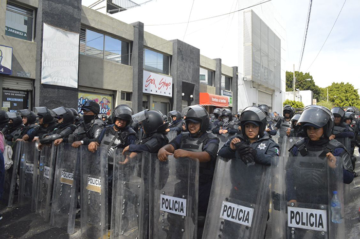 Redacción/La Voz de Michoacán Morelia, Michoacán. Luego de que detuvieron a 34 maestros por bloquear las vías del tren, la SSP mantiene la vigilancia de las manifestaciones de la CNTE. Elementos de la Unidad de Restablecimiento del Orden Público (UROP) monitorean las acciones que agremiados al sindicato educativo llevan a cabo. Personal de la Policía Michoacán también realiza labores de vigilancia en avenidas principales y oficinas administrativas en diferentes puntos del estado. Además, a través del Centro Estatal de Comando, Comunicaciones, Cómputo, Control, Coordinación e Inteligencia se monitorea que las manifestaciones se realicen sin alteraciones.