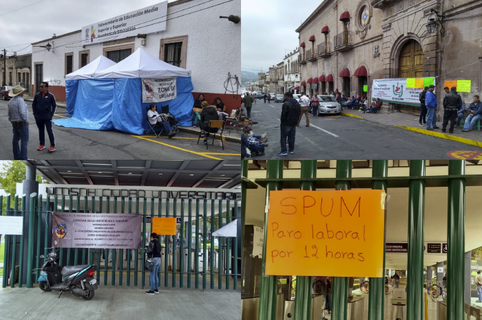 Tere Jaramillo/ La Voz de Michoacán Morelia, Michoacán. Al igual que ayer martes, hoy varios sindicatos han decidido manifestarse por la petición de los pagos adeudados. Y es que muchos desean ya empezar a realizar sus compras, propias del mes y no han podido hacerlo, hay casos como en la UMSNH que se les debe desde octubre, según información de los miembros de este sindicato, por lo que cada vez se hace mayor la deuda. A continuación te compartimos el escenario de este miércoles en la capital michoacana. SPUM, les deben desde octubre La Universidad Michoacana de San Nicolás de Hidalgo (UMSNH) pagó el 40 por ciento de la primera quincena de octubre con el subsidio ordinario que entregó el Gobierno del Estado, a pesar de ello el Sindicato de Profesores de la Universidad Michoacana (SPUM) va a paro de labores de dos días con el cierre de las instalaciones. Toman el SAT Integrantes del Sindicato Único de Trabajadores del Colegio de Estudios Científicos y Tecnológicos del Estado de Michoacán (Sutcecytem) mantienen diversas acciones el día de hoy, como son la toma de presidencias municipales, liberación de casetas y la presencia en el Servicio de Administración Tributaria en el Centro Histórico. Piden ampliación de presupuesto Aúnque no hay retraso de pagos decenas de trabajadores de la Secretaría de Salud de Michoacán (SSM), se manifiestan esta mañana en el centro histórico de Morelia, para que amplíen presupuesto y no les deban como ocurrió en meses pasados.