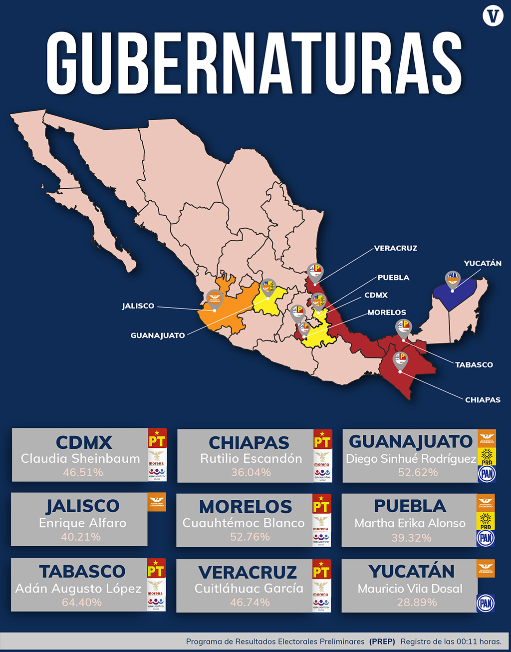 Redacción/ La Voz de Michoacán Ciudad de México. El PREP arroja resultados favorecedores para la coalición "Juntos haremos historia" también en las elecciones para gobernadores. En la Ciudad de México, incluso se ha reconocido el triunfo de la candidata, por parte de sus contrincantes.