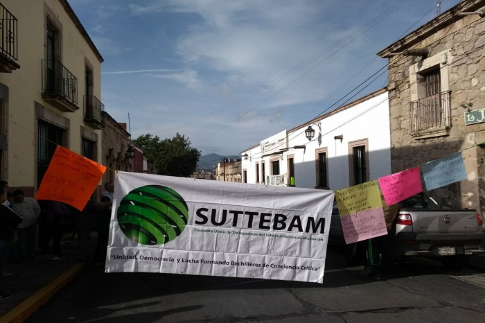 Juan Bustos/ La Voz de Michoacán Morelia, Michoacán. Tal y como lo habían anunciado la Suttebam inició movilizaciones luego de no recibir respuesta por parte de autoridades. El Sindicato Independiente de Trabajadores del Telebachilerato del Estado de Michoacán (Suttebam) está bloqueando la calle Andrés Quintana Roo donde se encuentra ubicadas las oficinas de la Subsecretaria de Educación Media Superior y Superior y la dirección General del Subsistema como exigencia al pago de prestaciones atrasadas. https://twitter.com/MICHOACANSSP/status/1009443444031348736 Silviano Paredes Correa, líder del gremio dijo que hasta el momento no han existido avances en el planteamiento de las demandas de incremento salarial y aclarar lo que tiene que ver con la entrega de bonos al Sindicato antagónico. En rueda de prensa en las inmediaciones de plaza la Soterraña, el dirigente reiteró que seguirán las acciones de presión en aumento si no hay respuesta por parte del gobierno estatal.