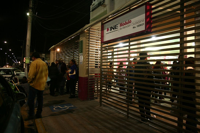 Redacción/ La Voz de Michoacán Morelia, Michoacán. Hoy fue el último día de realizar su solicitud o el cambio de datos personales ante el Instituto Nacional Electoral (INE), por lo anterior se registraron filas en los distintos módulos de esta dependencia. Si no se realizó el trámite este día sólo les entregarán fichas para reagendar su cita a las personas que vayan por la renovación de sus plásticos, mientras que el resto tendrán que esperar hasta después de julio. En Michoacán hay un padrón electoral de 3 240 231 según cifras del INE.