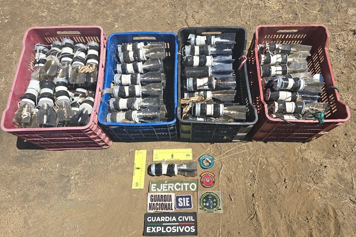 Redacción / La Voz de Michoacán Buenavista, Michoacán.- Un total de 168 artefactos explosivos improvisados fueron asegurados e inhabilitados por agentes especializados de las secretarías de Seguridad Pública (SSP) y de la Defensa Nacional (Defensa), en el poblado Paredes del Ahogado, en el municipio de Buenavista; además se inhabilitaron dos vuelos de drones en la zona. El personal de la Guardia Civil, Ejército Mexicano y Guardia Nacional llevó a cabo el levantamiento de más de un centenar de explosivos improvisados para ser lanzados desde dron, cuando efectuaban patrullajes preventivos en caminos de terracería de dicha comunidad. Luego de realizar los perímetros de seguridad correspondientes, los 168 artefactos improvisados fueron desactivados por el Grupo de Respuesta a Emergencias (GRE) de Defensa, en conjunto con el Agrupamiento Especializado en Artefactos Explosivos y Materiales Peligrosos de la Guardia Civil. Asimismo, en la zona los uniformados localizaron tres kilos de pólvora aluminizada y un kilo de clorato de potasio, este último sirve para la elaboración de explosivos o pirotecnia. Gracias a las herramientas tecnológicas con las que cuenta la corporación estatal fueron neutralizados dos sobrevuelos de drones, al parecer utilizados por una célula delictiva. La SSP trabaja a diario con las fuerzas castrenses para garantizar la seguridad de la población en la región de la Tierra Caliente.