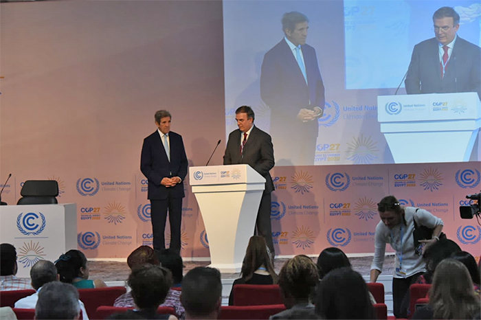 EFE / La Voz de Michoacán Sharm El-Sheikh, Egipto. México prometió reducir sus emisiones de gases de efecto invernadero entre el 22% y el 35% en los próximos 8 años, anunció este sábado el canciller mexicano Marcelo Ebrard. Además, dijo que esta decisión forma parte de un proyecto conjunto de energías renovables con Estados Unidos y que representa una inversión 48 mil millones de dólares. Durante su participación en la COP27, la 27 cumbre del clima de la ONU que estos días se celebra en Sharm El-Sheikh, Egipto, Ebrard, acompañado del enviado especial para el Clima de Estados Unidos, John Kerry, presentó los compromisos puntuales de México para hacerle frente a la crisis climática, en los próximos años. Además de la reducción de gases propuesta, Ebrard prometió la reducción de emisiones en 52 millones de toneladas de carbono y la generación del doble de la emisión actual de energía limpia para 2030: 40GW (Gigavatios) más. “Estas metas le permitirán a la región de América del Norte tener una de las transiciones energéticas más eficientes (...) La decisión del presidente (Andrés Manuel) López Obrador significará miles de nuevos empleos y la expansión de la economía verde de México”, dijo el canciller. En su participación, Ebrard expuso la visión de México para la transición hacia energías limpias y precisó los compromisos del país latinoamericano en materia de medioambiente para mantener la suma de esfuerzos regionales y multilaterales contra la crisis climática. Científicos y expertos coinciden en la necesidad de trabajar en la implementación de los acuerdos climáticos existentes -el Acuerdo de París y la Convención para limitar el aumento de la temperatura a 1.5 grados-, así como en programas y políticas respaldadas por la ciencia y garantizar que los seres humanos estén en el centro de las conversaciones sobre el clima. Con esta presentación, Ebrard inició su gira por Medio Oriente y Asia donde también participará en la Cumbre de Líderes del Grupo de los 20 (G20) y la inauguración del mundial de Qatar.