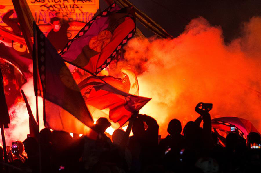 "Esto es recién el comienzo para un cambio. Estoy aquí por mis viejos, por mi hijo y para que las cosas sean diferentes", indicó con ojos llorosos Paulina Poblete, de 32 años, mientras blandía una bandera del pueblo mapuche, otro símbolo del denominado "estallido social".