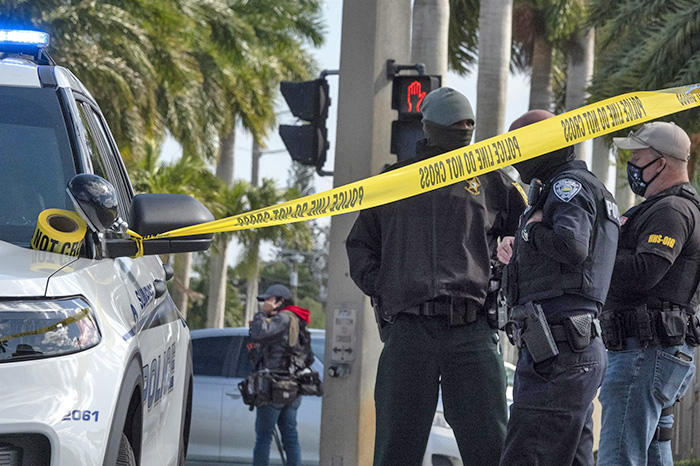 El alguacil del condado Polk, Grady Judd, dijo en rueda de prensa que el sospechoso, que fue detenido tras resultar herido en la confrontación con las autoridades, estaba fuertemente armado, vestido con camuflaje, con un chaleco antibalas y dijo que había ido para un "tiroteo".