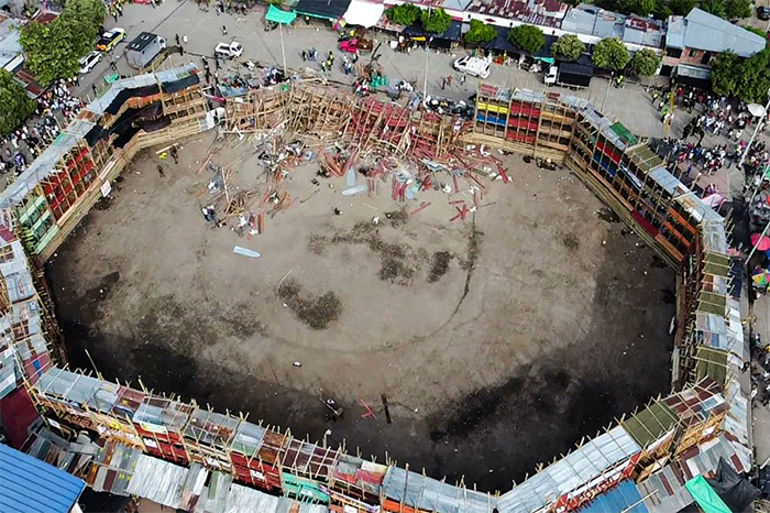 Colombia. Cuatro personas muertas dejó el desplome de uno de los palcos de la plaza de toros del municipio de El Espinal, del departamento de Tolima, en Colombia.