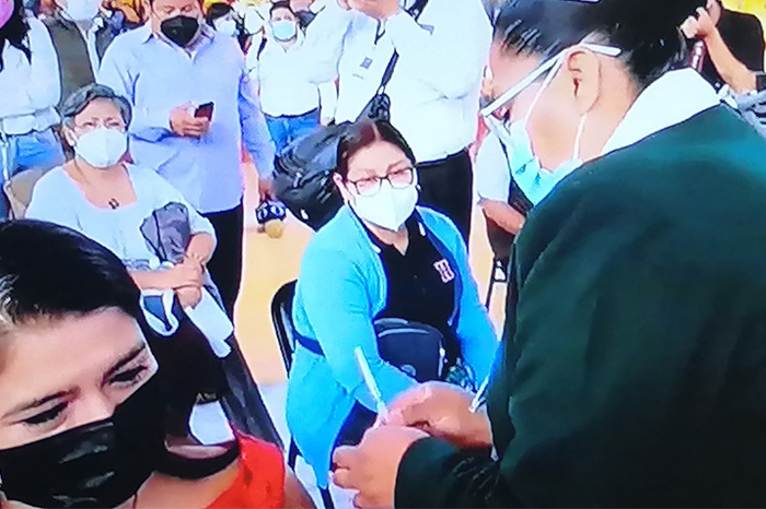 Durante su conferencia de prensa matutina en el Palacio Nacional, el presidente mexicano, Andrés Manuel López Obrador, conectó con Tuxtla Gutiérrez, capital de Chiapas, para ver en directo la vacunación de Cecilia Palacios, la primera maestra en ser vacunada este martes.