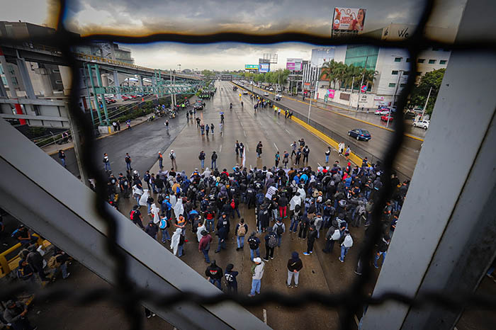 México. El bloqueo que policías federales realizan sobre Circuito Interior para solicitar indemnizaciones provoca esta tarde que cientos de automovilistas se queden varados a la altura del Aeropuerto Internacional de la Ciudad de México.