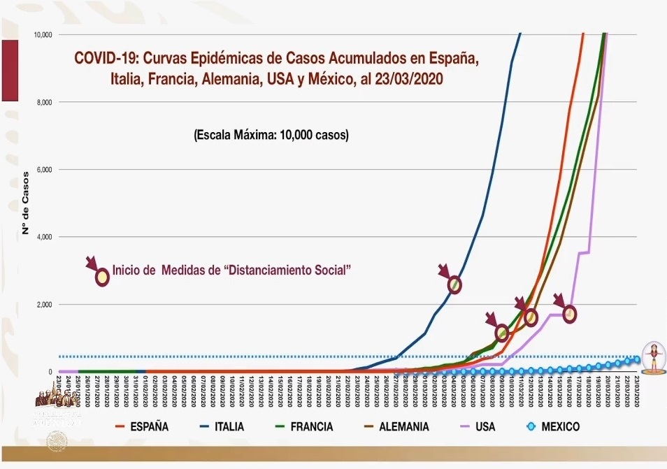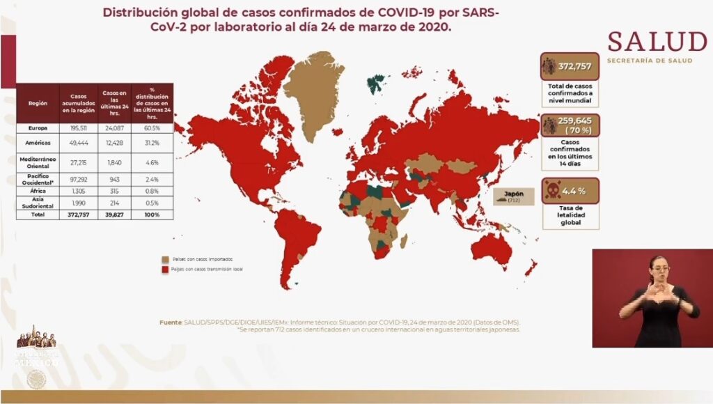 Redacción / La Voz de Michoacán Ciudad de México. En México hay 405 casos positivos de COVID-19, mientras que se confirmó un deceso más, con que suman 5 fallecimientos por la enfermedad, informaron esta noche autoridades de salud, al presentar el último corte de casos en el país, que muestra 38 contagios más en las últimas 24 horas. Hasta la noche de este martes, en todo el país suman mil 219 casos sospechosos y 2 mil 161 han dado negativo al coronavirus. Los estados que concentran más contagios son Ciudad de México, Nuevo León, Jalisco, Estado de México, Puebla, Yucatán y Quintana Roo, mientras que Tlaxcala se mantiene sin casos confirmados, pero cuenta con 18 sospechosos. De los 405 casos confirmados, 62 por ciento son hombres y 38 por ciento mujeres; 10 por ciento de ellos han requerido hospitalización. La edad promedio de los pacientes se mantiene en 39 años. De los casos positivos a COVID-19, 7 por ciento se encuentra en hospitalización, estable y 2 por ciento está grave. Con las cinco defunciones registradas hasta ahora por coronavirus, la tasa de letalidad de la enfermedad es de 1.2 por ciento, por debajo del nivel que han mostrado otros países, resaltaron autoridades de la Secretaría de Salud Federal. La persona más joven que falleció tenía 41 años y la mayor 77, con lo que la mediana de edad de los decesos es de 61 años. De estos cinco casos, 4 son hombres y una es mujer. Tres de las personas que murieron fueron atendidas en el Instituto Mexicano del Seguro Social (IMSS), una en instituciones de la Secretaría de Salud (SSa) y otra más en un hospital privado. Los pacientes que murieron presentaban comorbilidades como obesidad, diabetes, hipertensión, insuficiencia renal crónica y Enfermedad Pulmonar Obstructiva Crónica (EPOC). De estas cinco personas, tres eran de la Ciudad de México, una de Durango y una más de Jalisco. El subsecretario de Prevención y Promoción de la Salud de la SSa, Hugo López-Gatell Ramírez, presentó las curvas epidémicas de casos aumentados en España, Italia, Francia, Alemania, Estados Unidos y México, con la que explicó como países europeos implementaron medidas de distanciamiento social cuando registraron más de mil casos, o incluso más de 2 mil, como Italia, y México las aplicó mucho antes de los 405 casos confirmados que registra hoy. México entra en fase 2 La mañana de este martes, el gobierno federal anunció que el país entraba a la fase 2 de la pandemia, con lo que aplicarán nuevas medidas de contención del virus, entre las que destacan: -Suspensión obligatoria de actividades masivas (eventos y reuniones de 100 personas o más).-Suspensión de actividades laborales que impliquen que se trasladen las personas, en sector público y sector privado.-Las personas con síntomas de COVID-19 no pueden salir de sus casas por 15 días.-Se deben intensificar las medidas preventivas. Es obligatorio mantener la sana distancia.-Incrementar la protección y cuidado a adultos mayores.-Suspensión de clases del 23 de marzo al 19 de abril. El subsecretario Hugo López-Gatell dijo que con las medidas que está tomando México desde el inicio se prevé una epidemia larga, pero evitando que colapse el sistema de salud como ha ocurrido en otras naciones, por la cantidad de casos que se registran de un momento a otro. Las primeras semanas la expansión del virus es lenta pero luego se presenta una aceleración en los contagios, precisó el funcionario federal, quien dijo que en México aún no hemos llegado a ese momento, pero es tiempo de tomar medidas para hacer frente a ese momento y así "doblar la curva y tener menor transmisión del virus". A nivel mundial suman 375 mil 757 casos confirmados, de los cuales 70 por ciento, es decir 259 mil 645 se registraron en las últimas dos semanas. La tasa de letalidad a nivel global es de 4.4 por ciento, con 18 mil 891 fallecimientos.