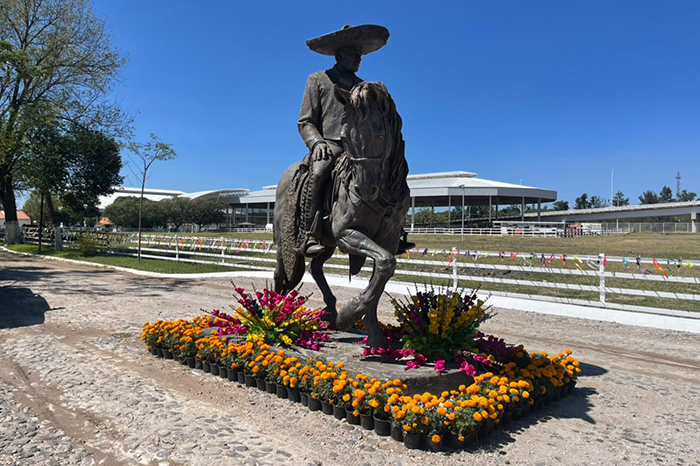 Tequila y otros vinos, pan de muerto, fruta, gran variedad de sus chocolates favoritos, su traje de charro y su montura de caballo, son elementos que se encuentran expuestos en el altar monumental al Charro de Huentitán.