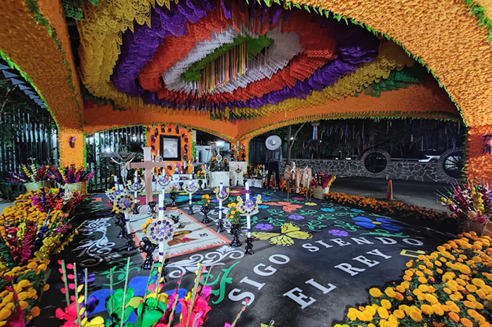 Para adornar el umbral por donde la familia Fernández y miles de mexicanos, esperarán el regreso de “El Rey” a este mundo en la noche del 1 al 2 de noviembre, se utilizaron más de 72 mil flores de cempasúchil de origen michoacano.