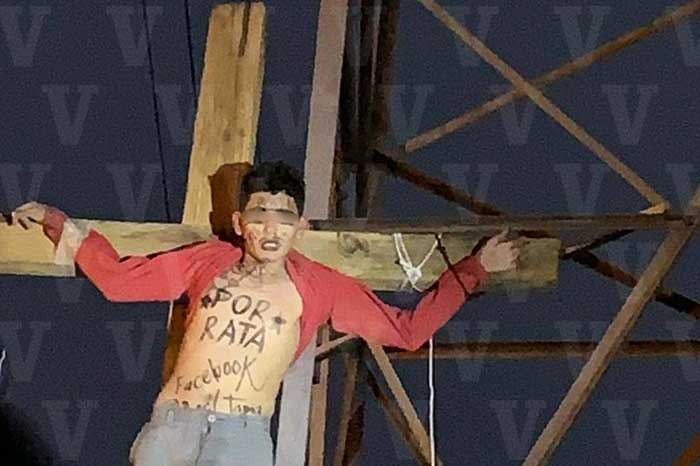 Alejandro Serrano / La Voz de Michoacán Uruapan, Michoacán. Vecinos del fraccionamiento Los Viñedos, ubicado en la ciudad de Uruapan, capturaron a un presunto ladrón y lo “crucificaron” para que saliera su imagen en Facebook y se viralizara, todo con el objetivo de darle “un quemón” ante la opinión pública, afirmaron los ciudadanos, quienes se dijeron hartos de los robos que manifiestan vivir a diario. El individuo, conocido con el alias de “El Tapia”, fue atrapado por la gente dentro de una vivienda ajena y traía consigo diversos objetos de valor que pretendía sustraer, narraron los habitantes del asentamiento en cuestión. Por lo anterior, los pobladores se organizaron, atraparon al sujeto y con marcadores le hicieron varias pintas en su cuerpo, algunos le dibujaron bigotes y otros le rayaron las leyendas “Facebook”, “Por Rata” y “El Tapia”. Según los agraviados el supuesto hampón ya es reincidente y nada le asunta ser detenido por la Policía, pues “al día siguiente anda otra vez libre, como la fresca”, aseguró un entrevistado que prefirió guardar el anonimato por temor a represalias. Luego de ser pintarrajeado “El Tapia” fue amarrado a una cruz de madera y ya “crucificado” lo exhibieron por el barrio para que tan siquiera “le diera poquita vergüenza”, gritaba la muchedumbre. Al final, el individuo quedó a disposición de la Policía, pero los ciudadanos esperan muy pronto volverlo a ver en las calles en “las andadas” y amagan: “lo vamos a volver a amarrar y a crucificar por ratero, a la otra hasta latigazos le daremos”.