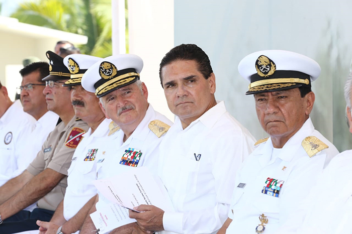 Acompañado del subsecretario de la Secretaría de Marina, almirante Ángel Enrique Sarmiento Beltrán, el mandatario estatal destacó la importancia de que la presencia de esta institución sea mayor y permanente, por la colindancia de este municipio con el estado de Colima; refrendó que este esfuerzo fue posible gracias a la estrecha coordinación de Estado, Municipio y Federación.