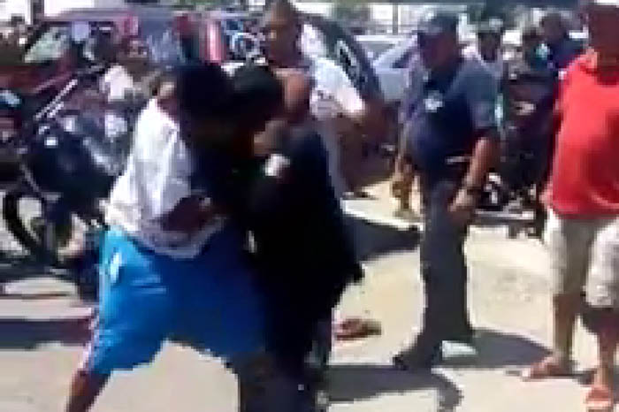 Alejandro Serrano/ La Voz de Michoacán Lázaro Cárdenas, Michoacán. Una pelea protagonizada por policías y simpatizantes del candidato independiente a la Presidencia Municipal de Lázaro Cárdenas, Benjamín Nava, se vivió este sábado en la Tenencia de Guacamayas. Al momento se ignora el motivo de la gresca que tuvo lugar la tarde de este día, pero se reportó que uno de los uniformados era el que principalmente tuvo el pleito callejero con los simpatizantes del candidato independiente. A través de las redes sociales, vídeoaficionados compartieron los instantes que captaron de la riña, en el material se observa que algunos policías y civiles tratan de parar el enfrentamiento a golpes, pero un agente y al menos tres ciudadanos son los que continúan con la gresca. Al final los simpatizantes de Benjamín Nava se retiraron. No hubo detenidos. También por las redes sociales los civiles denunciaron acoso y refirieron que cualquier situación que les pase responsabilizan al personal de Seguridad Pública. El candidato independiente al momento no ha emitido pronunciamiento sobre lo ocurrido.