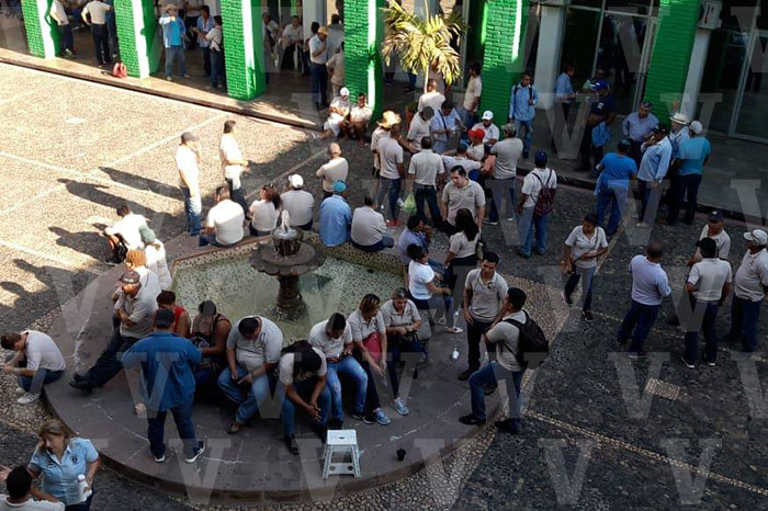 Alejandro Serrano/La Voz de Michoacán Lázaro Cárdenas. Con el argumento de que no han recibido un propuesta de aumento salarial en la negociación de su contrato colectivo de trabajo, empleados del gobierno municipal de Lázaro Cárdenas realizaron un paro de labores y se congregaron en el patio principal del edificio. Humberto Soberano Ramírez, secretario general del gremio, señaló que incluso se contempla una posible huelga para la primera semana de abril. Además de congregarse en el la zona se estacionaron varios vehículos oficiales del Ayuntamiento a un costado del Palacio Municipal. Las primeras áreas en las que se ha reportado afectación debido al paro laboral es en el servicio de limpia pues hay acumulación de basura tanto en la cabecera municipal como en las tenencias. Al momento no se tiene respuesta sobre la posible solución al conflicto laboral