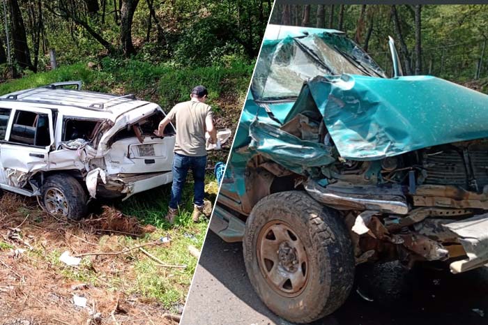 Redacción / La Voz de Michoacán Salvador Escalante, Michoacán. Cuatro lesionados fue el saldo de un choque volcadura entre una camioneta pick-up y una Grand Cherokee, el cual sucedió este domingo en el tramo carretero Pátzcuaro-Uruapan de la autopista "Siglo XXI" en este municipio de Salvador Escalante. La emergencia fue atendida por el Batallón de Seguridad en Carreteras e Instalaciones de la Guardia Nacional (GN). El acontecimiento fue en el kilómetro 60+600 de la vialidad antes citada. Las unidades involucradas en el percance fueron una camioneta Tacoma de color verde con placas de circulación MU7211U de esta entidad federativa y una Jeep Cherokee de color blanco con matrícula PPS3952 de Michoacán. En la Cherokee debido al choque hubo tres heridos y en la Tacoma un lastimado. Las víctimas fueron atendidas por unos socorristas locales, quienes las canalizaron a recibir atencion médica. En tanto, los guardias nacionales abanderaron la zona para evitar otro percance, además de hacer los peritajes respectivos para determinar responsabilidades. Debido al choque entre los dos vehículos la Tacoma quedó destrozada del frente y sobre la cinta asfáltica, mientras que la Jeep se salió de la carretera, volcó y terminó en una pequeña zanja. La GN ordenó que una grúa remolcara los automotores dañados a un corralón oficial para las actuaciones respectivas.