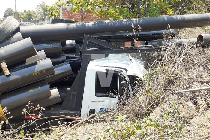 Redacción / La Voz de Michoacán Uruapan, Michoacán. El conductor de un camión tipo plataforma que transportaba tubos de acero pereció, luego de que la pesada unidad se saliera de la carretera a su izquierda, brincó una cerca de piedra y terminó impactándose en un paredón, en la conocida Curva del Diablo, que se ubica en el kilómetro 55.5 del tramo carretero Paracho-Uruapan. Los hechos tuvieron lugar aproximadamente a las 13:00 horas de este lunes, cuando circulaba con dirección a Uruapan, un camión tipo plataforma International, color blanco, que transportaba varios tubos de acero. Posiblemente la unidad sufrió alguna falla en el sistema de frenos en la pendiente ubicada en la Curva del Diablo y siguió su camino en línea recta, saliéndose del camino hacia la izquierda. El camión se impactó contra una barda de piedra perimetral, pasó por una explanada y finalmente chocó de frente contra un paredón, a un costado de una construcción, donde varios de los tubos metálicos se desplazaron hacia adelante, aplastando la cabina. Al lugar arribaron paramédicos, pero no había nada que hacer, el tripulante había dejado de existir; elementos de la Guardia nacional acordonaron el lugar. La víctima no había sido identificada.