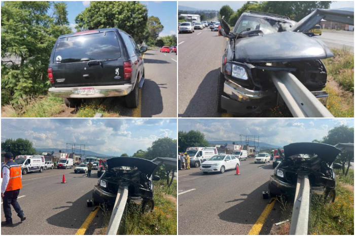 Redacción / La Voz de Michoacán Morelia, Mich.-Una camioneta se estrelló contra una banda metálica de contención ubicada a la orilla de la carretera Morelia-Pátzcuaro, hecho que dejó al menos cinco lesionados, ninguno de gravedad, informaron autoridades policiales. El accidente se registró la tarde de este martes en el kilómetro 12.5 de la citada vialidad, en las cercanías de la población de Uruapilla, municipio de Morelia. El hecho fue reportado al número de emergencias, después arribaron bomberos estatales y paramédicos, quienes auxiliaron a los lastimados, mismos que no requirieron traslado hospitalario. Se apreció que el vehículo siniestrado es de la marca Ford Expedition, color negro, con placa PHP060C, que cual quedó incrustado en la citada barrera de protección. Unos oficiales se encargaron del peritaje correspondiente para deslindar, después el automotor fue retirado por una grúa.
