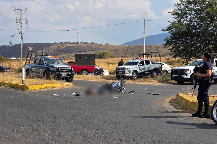 Redacción / La Voz de Michoacán Jacona, Michoacán. Dos jovencitos que viajaban a bordo de una motocicleta fueron embestidos por una camioneta que terminó por fuera de la cinta asfáltica, con saldo fue de un muerto y un lesionado. El fatal accidente se registró la tarde de este lunes en la carretera Jacona-Jiquilpan, justo a la altura del Crucero de la Fresa., hasta donde se movilizaron elementos de la Dirección de Seguridad Pública y Tránsito Municipal, así como de la Guardia Civil y Seguridad Vial resguardaron la zona. Foto: La Voz de Michoacán. Mientras que los paramédicos de Protección Civil Municipal y Rescate confirmaron el deceso de Jesús T., de 16 años de edad y auxiliaron a Bryan Gael V., B., de 16 años de edad, quien resultó herido y fue canalizado a un nosocomio. Se supo que los menores viajaban a bordo de una motocicleta Veloci de color gris con placas de circulación L5E76M, mismos que cuando fueron impactados por una camioneta Suzuki color plata que era conducida por María Teresa B., R., de 40 años, misma que quedó a disposición de la autoridad competente, para el deslinde de responsabilidades. Al sitio llegó personal de la Fiscalía General del Estado, cuyos agentes y peritos se encargaron de realizar las actuaciones correspondientes, así mismo trasladaron el cadáver al Semefo e iniciaron la carpeta de investigación.
