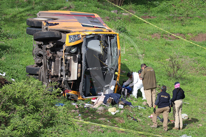 Redacción / La Voz de Michoacán Morelia, Michoacán. Al parecer, el conductor del camión del transporte público que se accidentó en la carretera Morelia-Recinto Ferial, habría sufrido un infarto, por lo que perdió el control del volante, consecutivamente se impactó contra un auto Nissan, color gris oscuro, y se precipitó al desnivel donde la unidad quedó volcada, revelaron fuentes allegadas al tema. El percance ocurrió la tarde de este viernes, hecho que dejó 25 personas lesionadas y dos sin vida, uno de ellos el chofer del camión y la otra una pasajera. Tras la colisión, el camión de la Ruta Industrial cayó un desnivel ubicado a la orilla del camino Morelia-Recinto Ferial, El percance sucedió en las cercanías de Ciudad Salud. El otro vehículo involucrado terminó chocado y volcado. De los 25 heridos ya están identificados 17, informaron autoridades policiales y de rescate: Raquel Rosas, 47 años de edad María Maritza Alonso, 51 años Ingrid Calderón, 16 años Emigdia Alanis, 24 años Esteban Calderón, de 2 años María Teresa de Jesús, de 60 años Ortensia Arres, de 47 años Luis Roberto Reyes, de 13 años Diomara Estrada, 54 años Francisco Aguilar, 61 años Baldomero Aguilar, 50 años Alem Alexis Aguilar, de 8 años Sara Heredia, de 50 años Martín Salgado María Victoria Rosalba Cisneros Kimberly Itzel Arrollo Lucina Nicasio La situación fue reportada por civiles al número de emergencias 911. En el sitio se presentaron bomberos y paramédicos, quienes confirmaron el deceso de un masculino, chofer del referido camión, así como la muerte de una fémina, quien era usuaria del mencionado transporte. Unos oficiales acordonaron el área y pidieron la intervención de la Fiscalía General del Estado (FGE), cuyos especialistas se encargaron de las investigaciones respectivas y trasladaron los cadáveres a la morgue para la práctica de la necropsia de rigor.