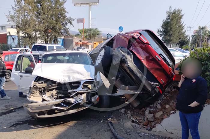 Redacción / La Voz de Michoacán Morelia, Michoacán. Un choque entre dos camionetas dejó como saldo seis personas levemente heridas y varios daños materiales a la orilla de la Calzada La Huerta, salida a Pátzcuaro, en Morelia, también en el trabajo periodístico. La aparatoso accidente se registró la tarde de este domingo a la altura del negocio de pollos al pastor La Granja, localizado en la colonia Prados de La Huerta, y en las cercanías de la desviación a la Tenencia Morelos. La emergencia fue atendida por los bomberos de la Coordinación Estatal de Protección Civil Michoacán (CEPCM), quienes auxiliaron a los lastimados; también unos paramédicos acudieron al sitio para atender a los lesionados mismos que no requirieron traslado hospitalario. Los vehículos siniestrados son: una Jeep Grad Cherokee, color guinda, con placa PJA662C; y una Ford, color blanco, con matrícula PLW899D. Se dijo que también un auto Honda Civic resultó afectado en menor escala. De acuerdo con fuentes allegadas al tema, la Ford circulaba en el sentido a Pátzcuaro, pero en determinado momento se le atravesó otro carro, así que el conductor lo esquivó, se estrelló contra el muro de contención y la unidad salió proyectada contra la camioneta Jeep. Unos oficiales de Tránsito se encargaron del peritaje correspondiente para determinar responsabilidades. Al final una grúa retiró los transportes perjudicados.