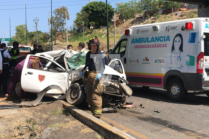 Redacción / La Voz de Michoacán Morelia, Michoacán. Un automovilista resultó lesionado tras estrellarse contra uno de los pilares de concreto del puente que conecta las avenidas Guadalupe Victoria y Torreón Nuevo, al norte de la ciudad de Morelia. El accidente se registró durante la tarde de este lunes sobre el Periférico Paseo de la República, en las cercanías de las colonias El Realito y Barrio Alto. El percance fue reportado rápidamente al número de emergencias 911, entonces acudieron unos paramédicos locales y le otorgaron los primeros auxilios al herido, quien fue canalizado a un hospital para su adecuada valoración médica. La identidad del paciente no fue informada por los socorristas, sólo se apreció que el automóvil siniestrado es un Ford KA, color blanco, con matrícula de circulación PGC338U, el cual quedó destrozado. Los oficiales de la Policía Michoacán de Tránsito y Movilidad llegaron a la escena y la abanderaron para evitar otro percance, además realizaron el respectivo peritaje y al final el vehículo afectado fue remolcado a un corralón.