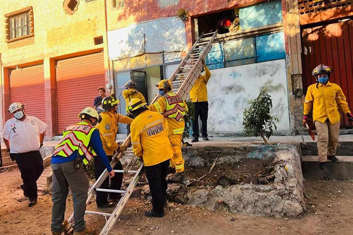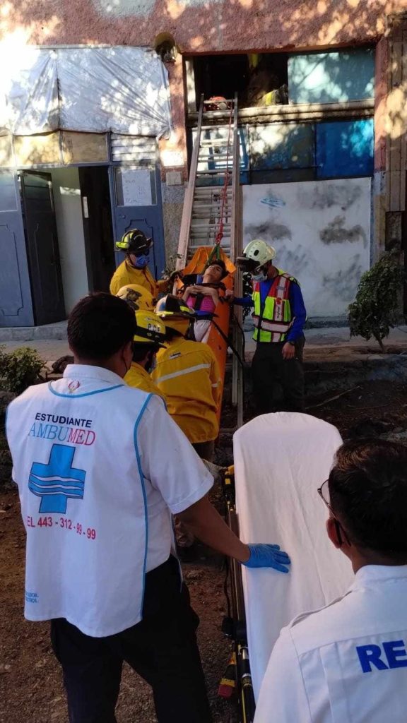 Redacción / La Voz de Michoacán Morelia, Michoacán. Bomberos estatales y paramédicos de Ambulancias Ambumed auxiliaron a un masculino que resultó herido al sufrir una caída dentro de su casa en la colonia Moreliana Nueva Valladolid, comentaron fuentes allegadas al tema. De acuerdo con la información obtenida, el afectado estaba lastimado y sin poder moverse, esto en el segundo piso del inmueble y debido al espacio estrecho para acceder a la segunda planta, los vulcanos tuvieron que sacarlo del inmueble a través de una abertura localizada en la parte alta de la fachada del hogar. Durante las maniobras, los rescatistas utilizaron un sistema de cuerdas y una escalera para extraer al paciente, luego los elementos de Ambumed lo canalizaron a un hospital para su adecuada valoración médica. Foto: La Voz de Michoacán. Foto: La Voz de Michoacán. Foto: La Voz de Michoacán. Foto: La Voz de Michoacán.