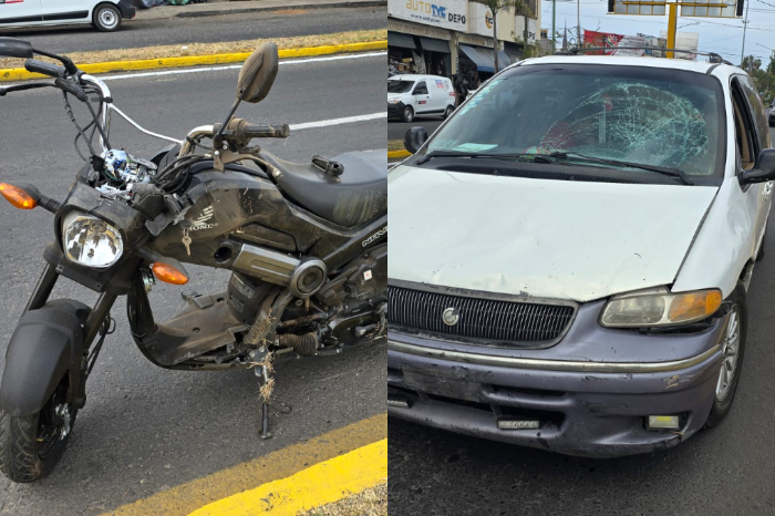 Elementos de Tránsito Municipal se encargaron de los peritajes y aseguraron la motocicleta de la marca Honda Navi, de color negro, con placas L3445J, así como la camioneta, una Chrysler Town & Country de color blanco, con matrícula JJL-83-46 de Jalisco, conducida por el señor Serafín Z., A.