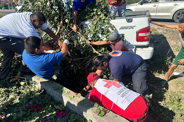 Redacción / La Voz de Michoacán Lázaro Cárdenas, Michoacán. Una mujer que viajaba junto con un menor a bordo de una cuatrimoto, perdió la vida en un nosocomio de Lázaro Cárdenas, donde era atendida de las severas heridas que padeció al ser embestida por una camioneta cuyo conductor se dio a la fuga. El accidente se registró sobre la Avenida Morelos, frente a la tienda Aurrerá de la tenencia de Las Guacamayas, cuando las víctimas fueron arrolladas por una camioneta pick up blanca, que terminó encima de los afectados, tras derribar un árbol. El conductor de la furgoneta descendió de su unidad y huyó del lugar, mientras que los paramédicos de Protección Civil y Cruz Roja acudieron para brindar atención a los heridos, quienes fueron trasladados a un hospital. Horas después, las autoridades fueron informadas sobre el deceso de la señora Amalia S. S. De aproximadamente 50 años, en tanto que el menor de quien se ignora su identidad, se debate entre la vida y la muerte. Agentes y peritos de la Fiscalía General del Estado al enterarse del fallecimiento acudieron al sanatorio para realizar las correspondientes diligencias, así como el levantamiento del cadáver.