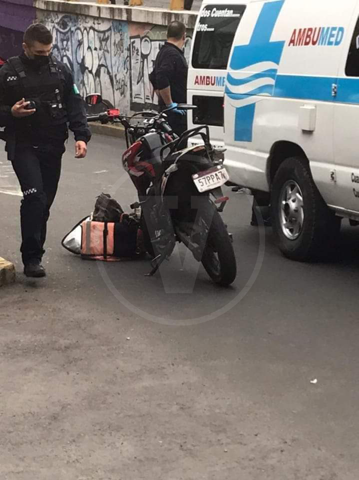 Redacción / La Voz de Michoacán Morelia, Michoacán. Un motorepartidor de comida quedó gravemente herido y perdió una pierna tras chocar contra un muro de contención y caer desde lo alto de un puente de la avenida Francisco I. Madero Poniente de Morelia. El percance sucedió la tarde-noche de este lunes en el viaducto ubicado cerca de la avenida Tres Puentes, frente a la colonia Bocanegra, a pocos metros de las vías férreas y de la avenida Periodismo. El hecho fue reportado al número de emergencias e inmediatamente arribaron patrulleros municipales para auxiliar al lesionado, joven de aproximadamente 25 años de edad, cuya identidad es desconocida. Asimismo, en el sitio se presentaron unos paramédicos, quienes canalizaron al paciente a un hospital privado para su atención médica. Los uniformados de Tránsito se encargaron del peritaje correspondiente y aseguraron el motociclo. Foto: La Voz de Michoacán.