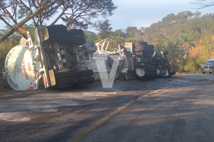 Redacción / La Voz de Michoacán Lázaro Cárdenas, Michoacán. Un tractocamión que transportaba combustible se volcó sobre la carretera Lázaro Cárdenas-Arteaga. en las inmediaciones de las localidades de El Tazahual y El Higueral, en el primero de los municipios en mención. El sitio exacto del siniestro fue a la altura del kilómetro 296.500 en el tramo Infiernillo-Playa Azul, donde por fortuna no hubo derramamiento de combustible. Personal de Seguridad Pública acudió al sitio para abanderado y evitar otro accidente. Posteriormente también se constituyeron elementos de la Guardia Nacional División de Seguridad en Instalaciones y Carreteras para supervisar la segura remoción de la unidad que transportaba más de 32 mil litros de combustible y pertenece a una empresa de Tumbiscatío. Lo anterior fue confirmado por personal de la Secretaría de Infraestructura, Comunicaciones y Transportes, que solicitó precauciones a los conductores que pasan por la zona dado que aún están las maniobras de remoción. Al momento se desconoce cuál fue la cinemática oficial del accidente. Asimismo, el chofer fue revisado por personal del Centro Regulador de Urgencias Médicas que reportó que no necesitaba traslado a un hospital.