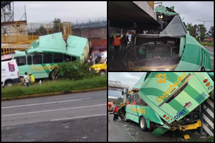 Información en desarrollo Redacción / La Voz de Michoacán Morelia, Michoacán.- La mañana de este domingo un trágico accidente se registró en Salida a Salamanca de la ciudad de Morelia, al estrellarse -al parecer de frente- un urbano con pasajeros abordo. Imágenes circularon al momento en redes sociales y dejan ver que el camión choco del lado derecho del copiloto contra la rampa de un puente peatonal, en dirección a Morelia, a la altura de la colonia Los Ángeles. El techo del camión prácticamente se despegó de la unidad, así como la parte trasera y un porcentaje del lado izquierdo, es decir el accidente dejó si latonería al urbano. Los primeros reportes señalan hasta una veintena de heridos de distinta gravedad. Al momento llegaron Bomberos y Policías de Morelia y Tarímbaro. Hasta las 8:30 de la mañana se desconoce la razón del desafortunado accidente y sobre el chofer.