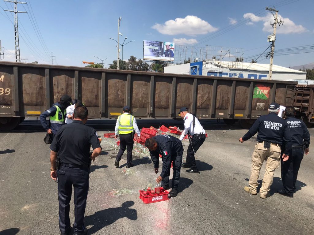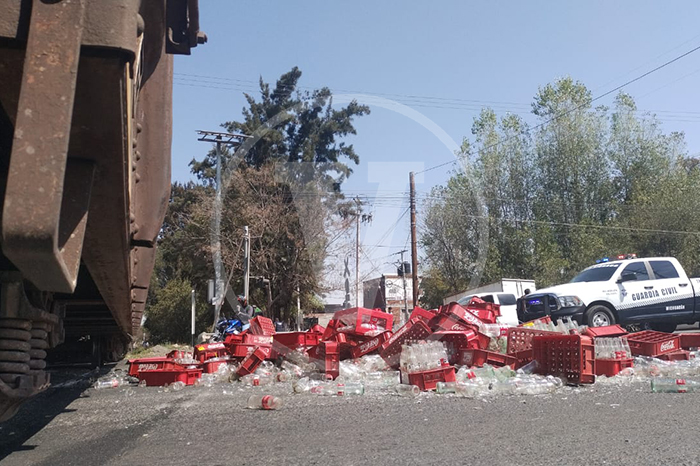 Morelia, Michoacán. Un tráiler de la empresa Coca Cola intentó ganarle el paso al ferrocarril, no lo logró y fue alcanzado por la pesada máquina, siendo golpeado al final de su segundo remolque, lo que género que decenas de cajas con envases para refresco terminaran sobre el pavimento.