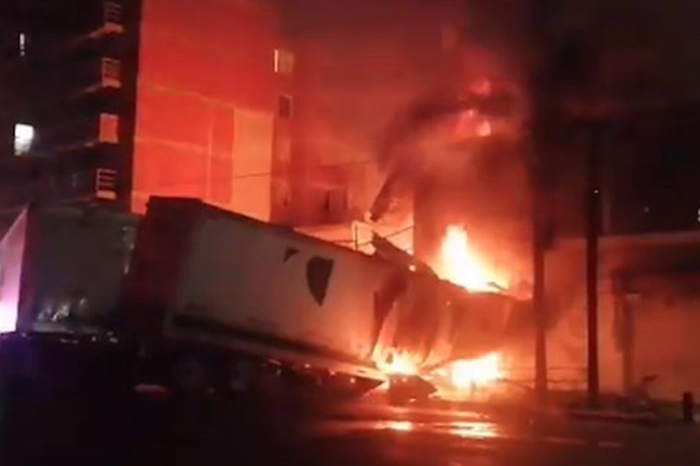 El tráiler se incendió luego de estrellarse contra dos negocios del lugar, los cuales tuvieron daños en las fachadas.