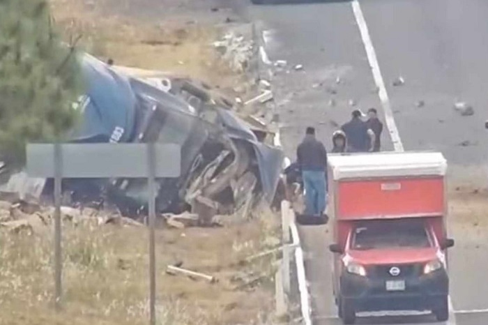 Pátzcuaro, Michoacán.- Un tráiler volcó y la mercancía que transportaba quedó regada a la orilla de la carpeta asfáltica tras dañarse el contenedor. El hecho tuvo lugar sobre la autopista Pátzcuaro-Cuitzeo, dentro del municipio de Pátzcuaro, informaron autoridades policiales y de rescate. El aparatoso accidente se registró durante la mañana de este domingo en el kilómetro 57+500 de la citada vialidad, en las inmediaciones de la Caseta de Cobro Chapultepec. Se dijo que aparentemente sólo hubo daños materiales. Trascendió que el mencionado vehículo, el cual es uno con cabina azul y rótulos de la empresa "TDR Soluciones logísticas", se salió de trayectoria, chocó contra una barrera metálica de contención y terminó siniestrado en un terreno. La situación fue reportada al número de emergencias, después arribaron unos patrulleros de la Guardia Nacional, quienes se encargaron del peritaje respectivo y solicitaron una grúa para retirar el tractocamión afectado.
