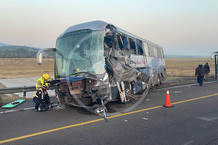 Redacción / La Voz de Michoacán Cuitzeo, Michoacán. El choque entre un autobús y un camión tipo torton, ocurrido sobre la autopista Morelia - Salamanca, dejó como saldo una pasajera muerta y dos lesionados, así como cuantiosos daños materiales. El accidente se registró la mañana de este sabado, sobre dicha vialidad, a la altura del municipio de Cuitzeo, donde un camión cargado con flores, impactó contra el costado izquierdo de un trasporte de pasajeros de la línea Omnibus de México. Algunos automovilistas alertaron al servicio de emergencias sobre la emergencia. De inmediato se trasladaron al sitio, los paramédicos de Protección Civil Estatal, mismos que a su llegada revisaron a los pasajeros del autobús conformando la muerte de una mujer, mientras de dos masculinos heridos fueron auxiliados y posteriormente trasladados a hospitales en la capital michoacana. Al revisar el interior de del autobús auxiliaron a tres pasajeros, entre ellos una mujer que al ser atendida confirmaron su muerte. Los oficiales de la Guardia Nacional de la División Seguridad en Carreteras e Instalaciones abanderaron el área, en tanto que los expertos de la Unidad de Atención Inmediata emprendieron las correspondientes diligencias sobre el caso.