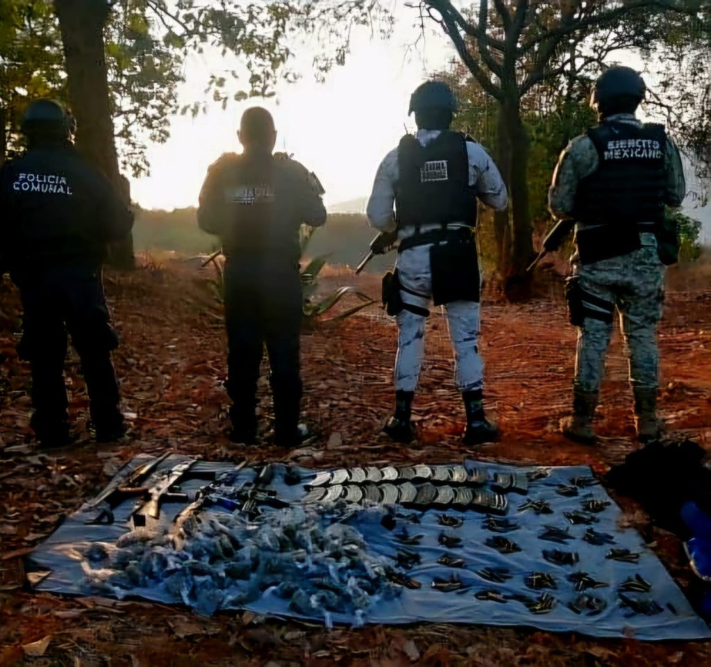 Redacción / La Voz de Michoacán Santiago Tangamandapio, Michoacán. Elementos federales, estatales y Policía Comunal, decomisaron una granada, seis armas largas, 23 cargadores, 490 municiones y 130 dosis de marihuana, durante labores operativas en el poblado de Guáscuaro, tenencia de Tarecuato, perteneciente al municipio Santiago Tangamandapio. Personal castrense y policial, con apoyo de la Guardia Nacional y la Policía Comunal, visualizó a varios civiles vestidos con prendas tácticas quienes al notar su presencia emprendieron su huida. Al intentar darles alcance y hacer una revisión del lugar, encontraron en el suelo el artefacto explosivo, armamento y la droga señalada, lo cual se embaló para su puesta a disposición de la Fiscalía General de la República. Es de señalar que en la región Zamora, zona a la cual pertenece este municipio y sus localidades, se encuentran instaladas seis Bases de Operaciones Interinstitucionales (BOI), integradas por la Secretaría de la Defensa Nacional (Sedena), Guardia Nacional (GN) y Guardia Civil (GC), mismas que ya realizan patrullajes de reconocimiento para dar con los presuntos responsables.