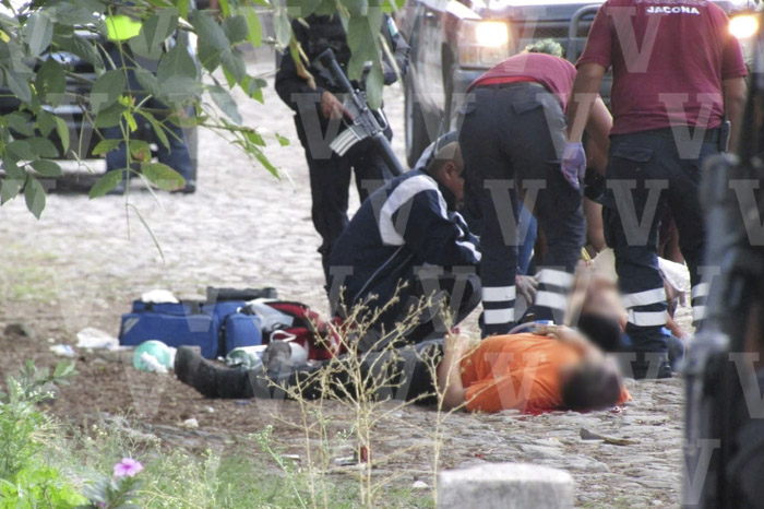 Alejandro Serrano / La Voz de Michoacán Jacona Michoacán. Dos hombres que se encontraban conviviendo en la vía pública de la colonia Francisco Villa, en Jacona, perecieron al ser agredidos a tiros por pistoleros desconocidos que de inmediato se dieron a la fuga, una vez que perpetraron el crimen. Este doble homicidio se registró cerca de las 19:10 horas de este viernes sobre la calle División del Norte, entre las vialidades Manuel Banda y Maclovio Herrera, donde quedaron tirados los afectados. Vecinos del lugar al darse cuenta de lo ocurrido de inmediato pidieron ayuda al número de emergencias. En cuestión de minutos arribaron los oficiales de la Policía Municipal y Michoacán así como los paramédicos de Protección Civil Municipal, estos últimos revisaron a los heridos y confirmaron el deceso de Efrén G., B., de 33 años de edad, mientras que de emergencia trasladaron a un hospital a Jaime C., G., de 19 años de edad, donde lamentablemente perdió la vida. Durante las diligencias efectuadas por los agentes de la Unidad Especializada en la Escena del Crimen, se supo que ambos asesinados eran vecinos del Fraccionamiento Balcones de Jacona, siendo ignorado hasta el momento el móvil del doble homicidio. Los cuerpos fueron enviados al Servicio Médico Forense de la ciudad de Zamora para la práctica de los estudios Post Mortem.